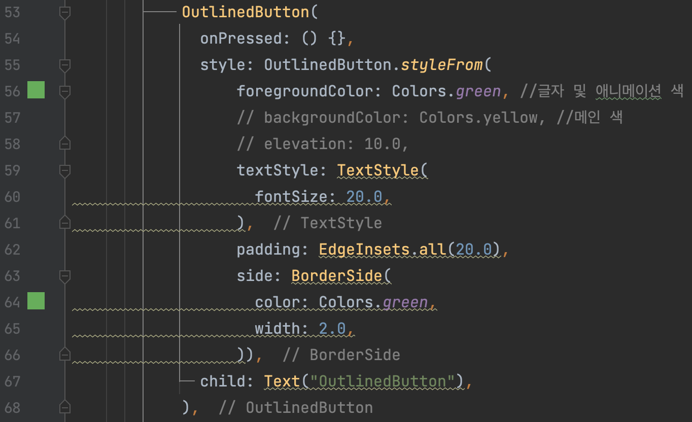 OutlinedButton에서 backgroundColor, elevation등을 지정하기 보다는 ElevatedButton에서 지정하는 게 용이하다고 생각되어 주석처리 해뒀다