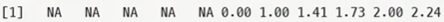 > sqrt(ifelse(x>=0, x, NA) # NaN 발생하지 않게 음수만 NA로 표시