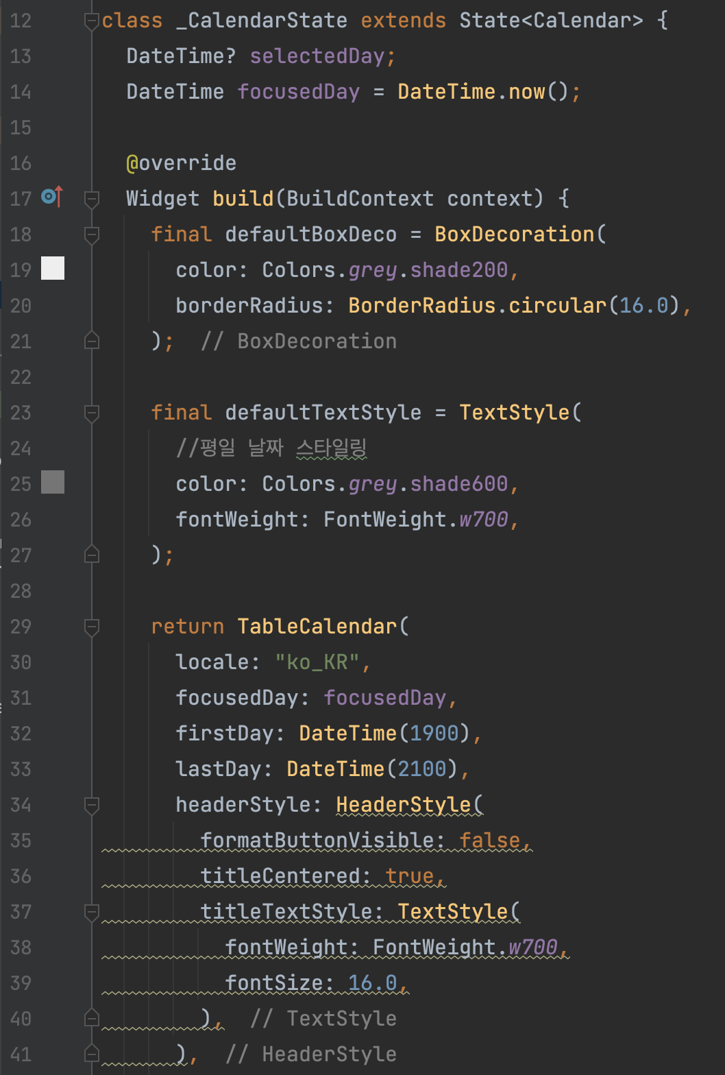 TableCalendar() 사용 시아래 세 매개변수는 꼭 넣어주어야 한다